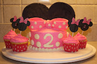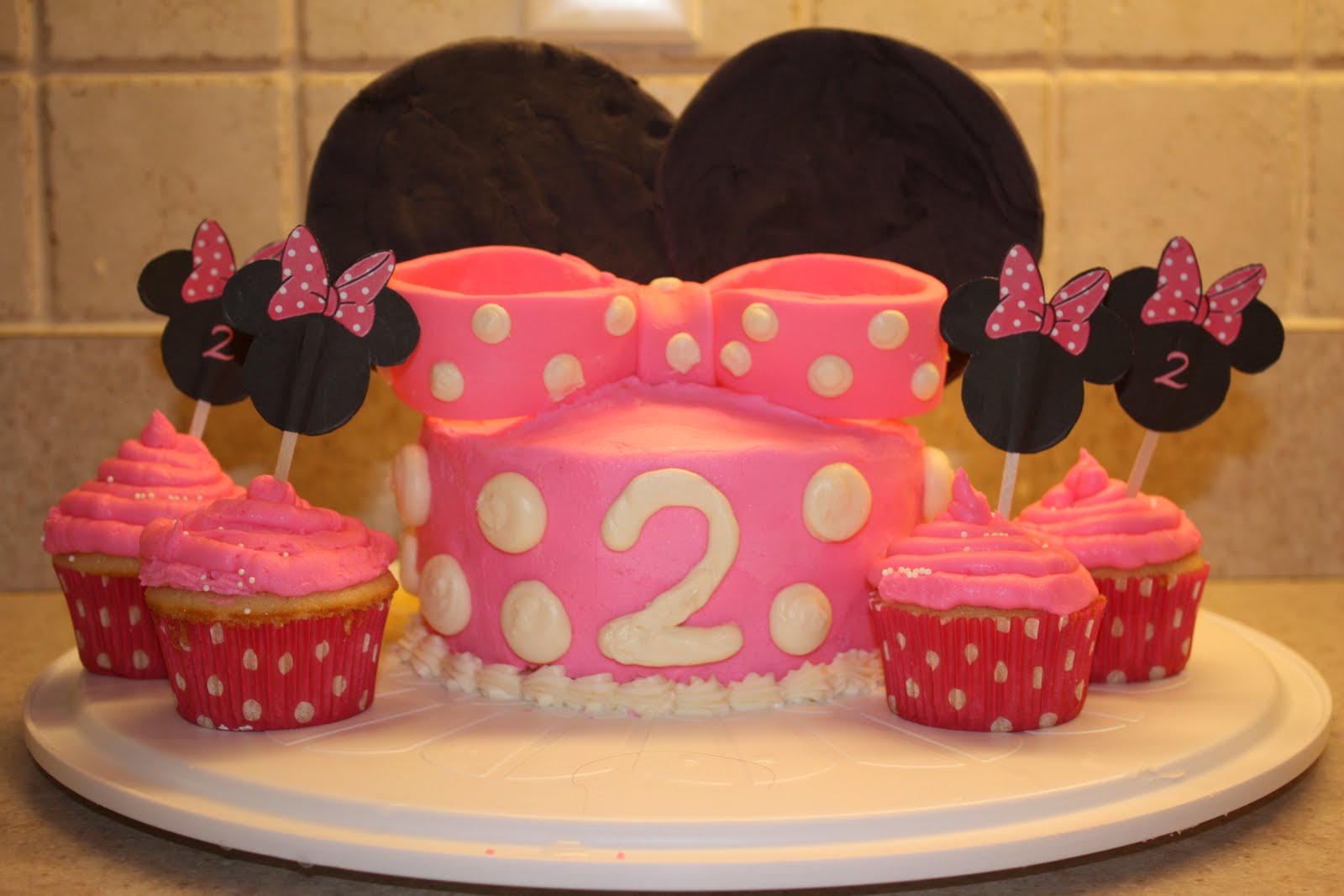 Little sis turns 2 this month and I always like to try making a fun cake/cupcake. After searching for some I thought she might like, she narrowed it down to this Minnie Mouse cake: