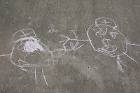 This one is a little hard to see, like the tub drawing...sidewalk chalk! This is Mommy and Daddy pirates, holding hands. (One is wearing an eye patch, both have on pirate hats.)