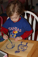 Busy painting a card (at one time, there were faces on here but they have been buried by the handprints)