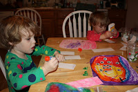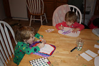 Big and Little Sis colored the "torso" first and also used stickers. (Big sis was determined to color every square inch this time, so little sister wanted to do likewise...they both enlisted Mommy's help for this!)