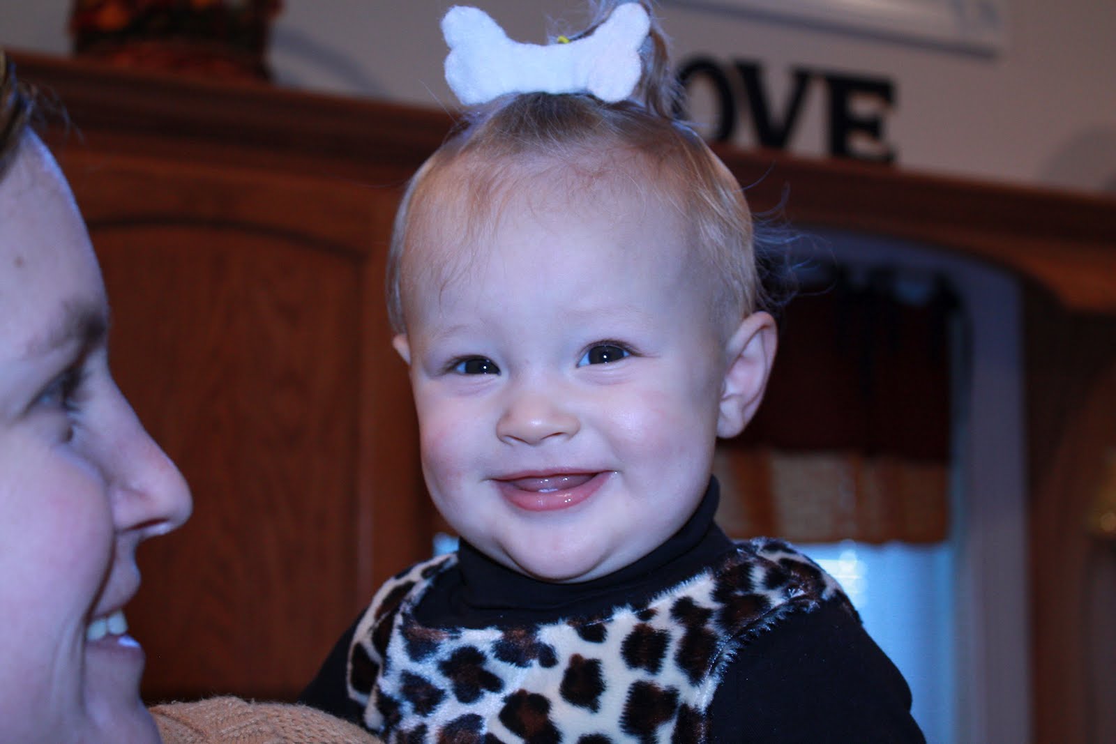 Sorry for all of the pics of Little Sis as Pebbles for her first Halloween. Right now, she's in that "over smiling" or scowling phase for pictures, so I just had to post all of these with her adorable smiling baby face!