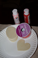 I loved the way our fall leaf garland turned out, so I thought I might try that for Valentine's day. My plan was to purchase hearts and have the girls help paint them. However, there was just one heart left. Instead, I opted for a simple oval shape, wrote "Be Mine" on them and ran with that instead. In retrospect, I wish I would have purchased wood letters and painted them, since my writing stinks! (It would have been more expensive, though.)