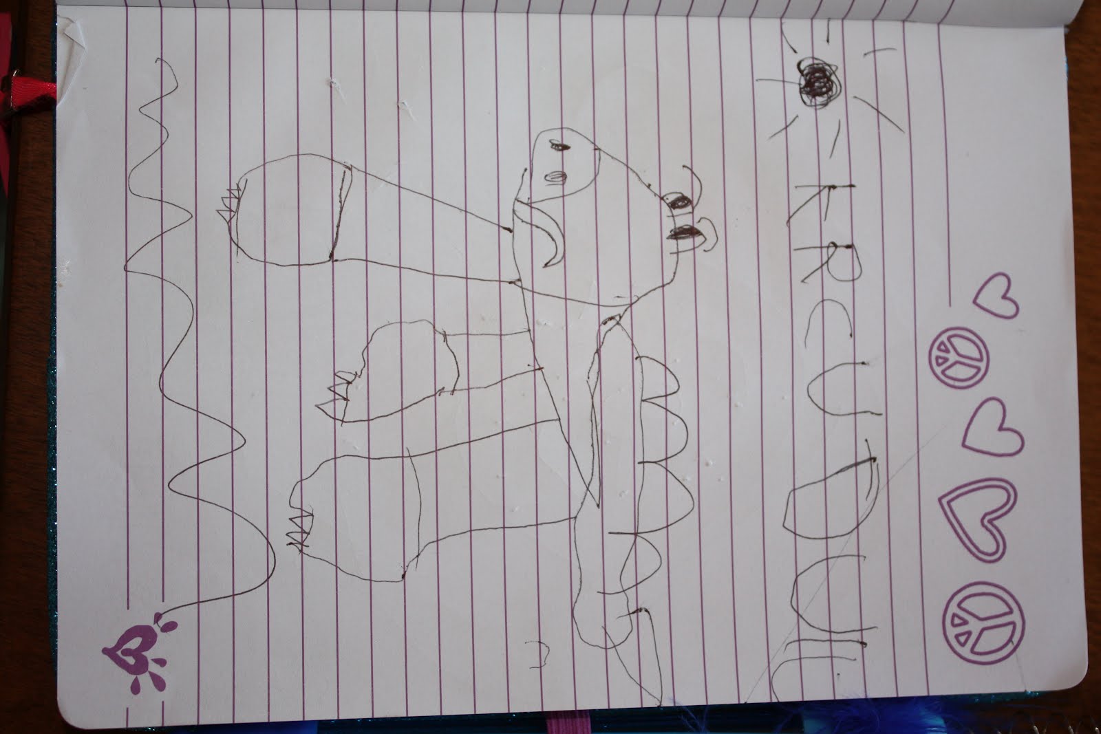 She drew a crocodile one night when she couldn't sleep and attempted to spell it with no help!