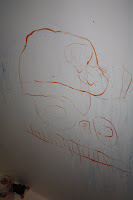 Busy painting a card (at one time, there were faces on here but they have been buried by the handprints)